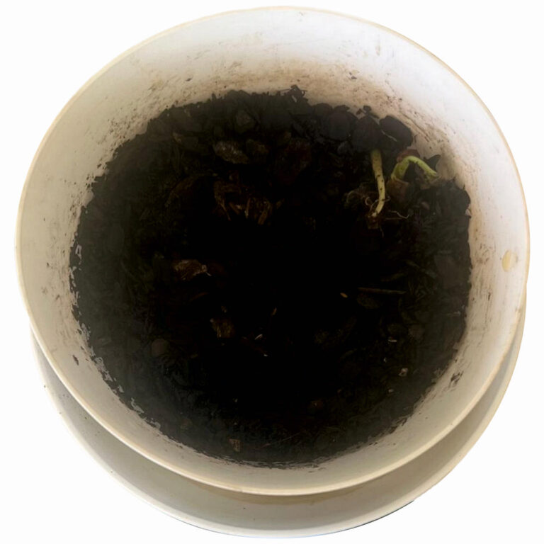 Ein Bohnenkeimling ist sichtbar.